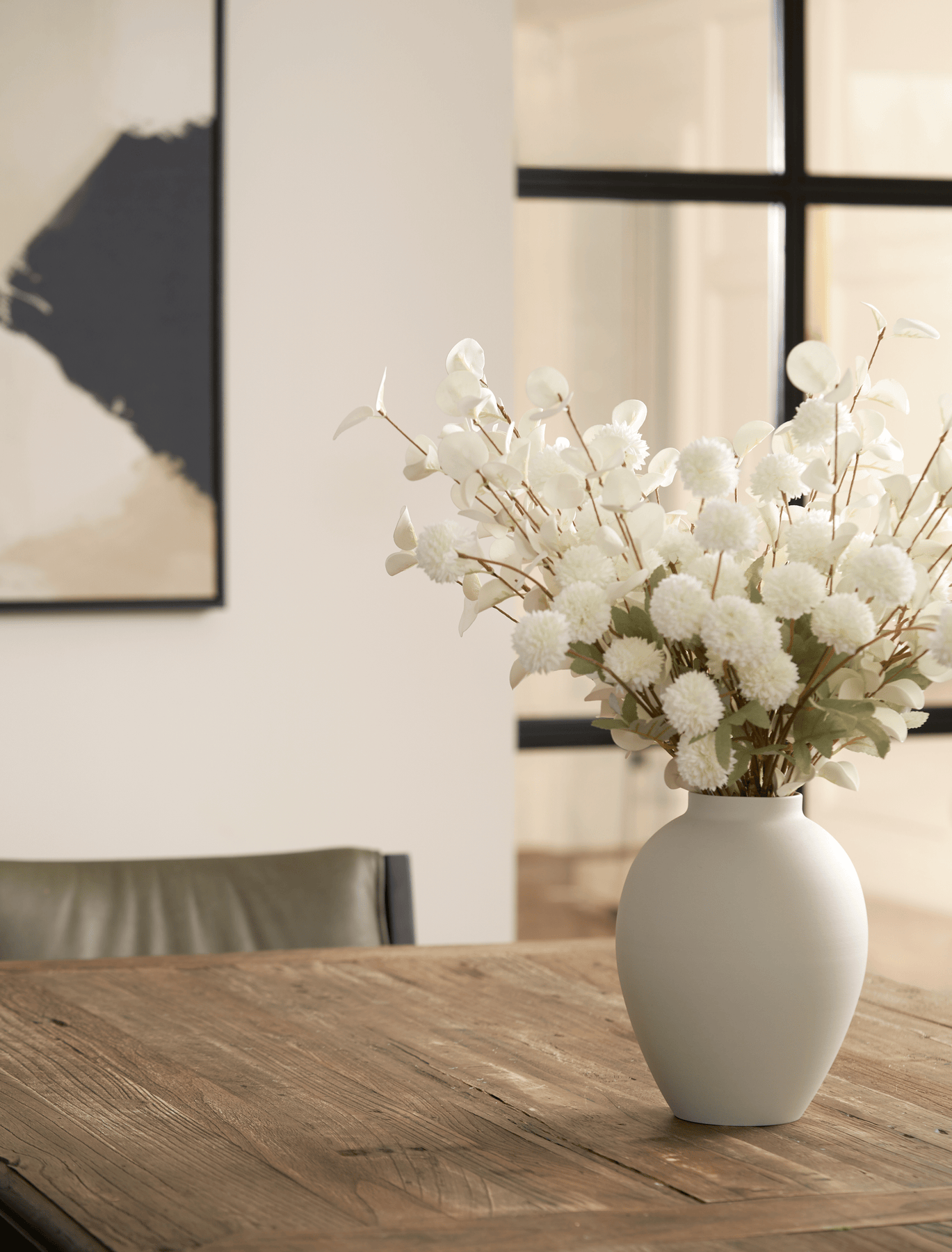 A beautiful iron vase with a stunning shape that tapers to a narrower neck opening. With a slightly textured finish, this vase combines rustic and modern interior styles for an elegant look.