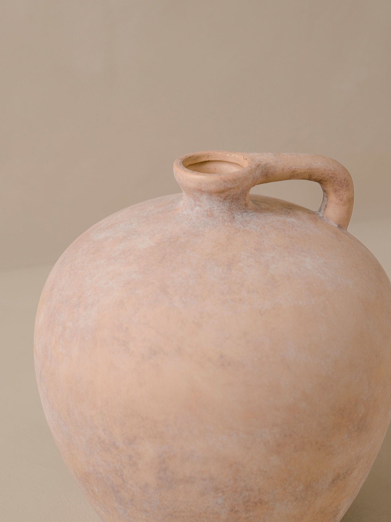 A beautifully rounded ceramic jug vase in a soft terracotta finish with a subtle washed effect. Designed with a narrow neck and structured handle, its generous proportions make it the perfect base for our oversized branches, adding warmth and character to your interior styling.