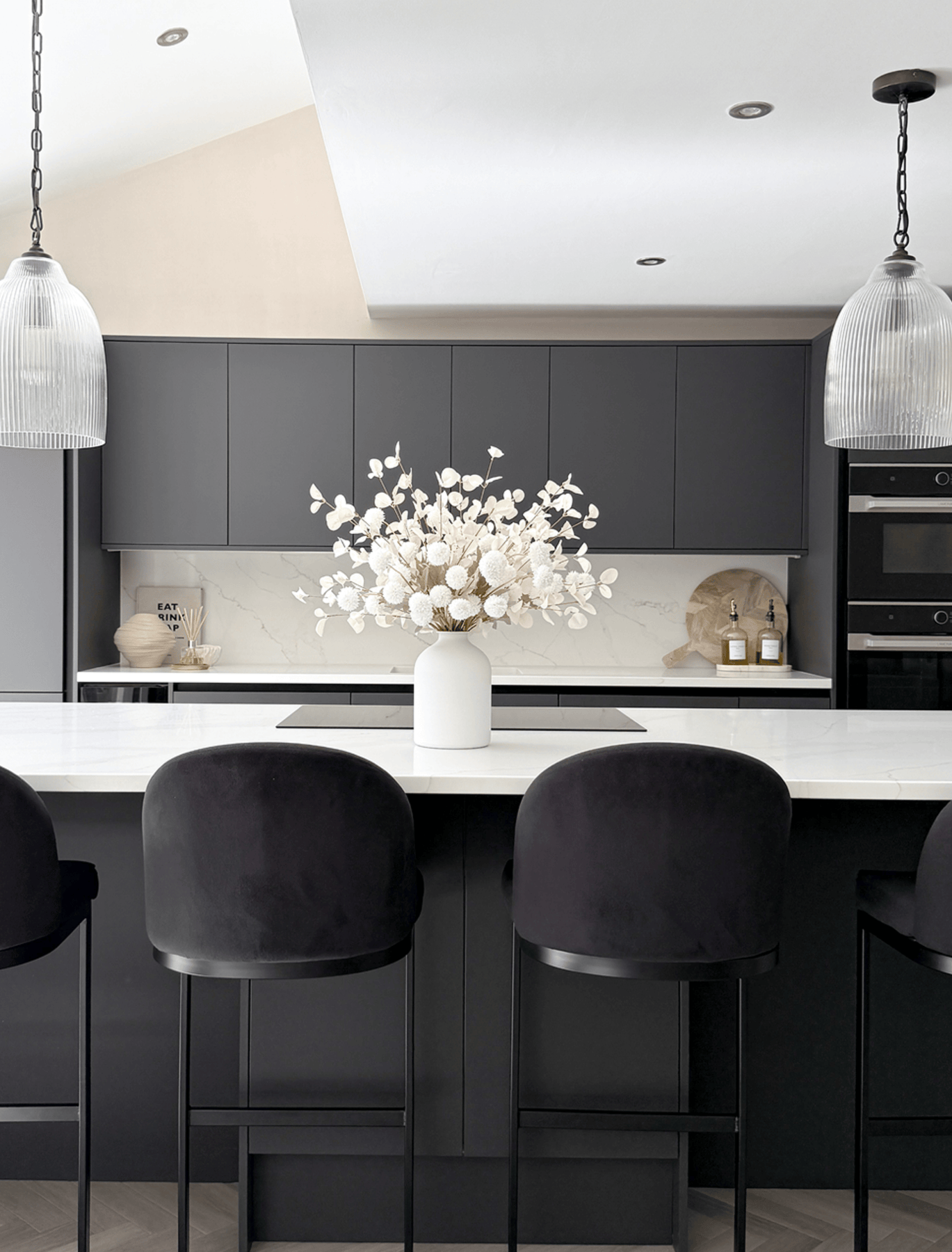 A rustic yet modern vase in a stunning textured stone white finish. This vase is perfect for our Faux Hydrangea.