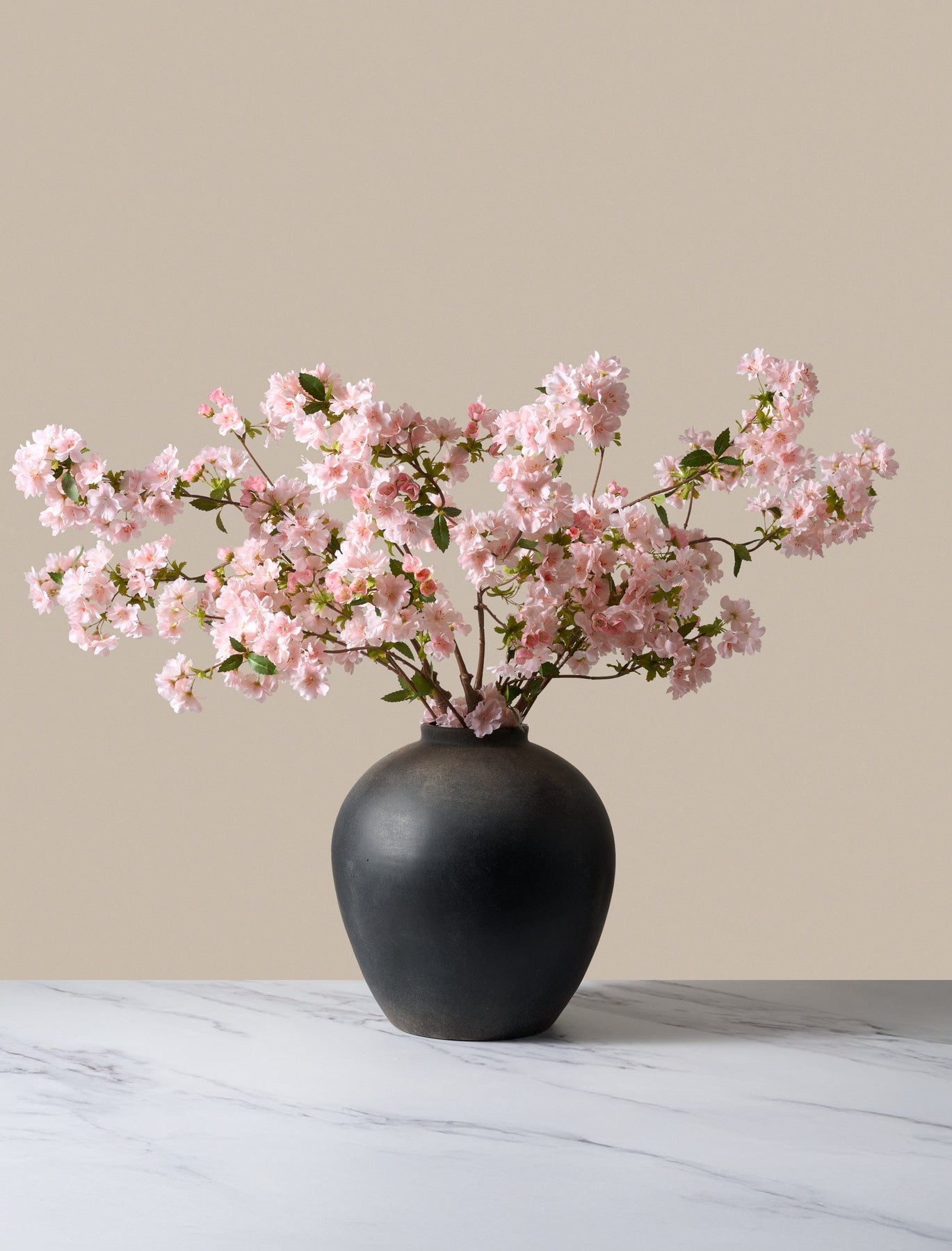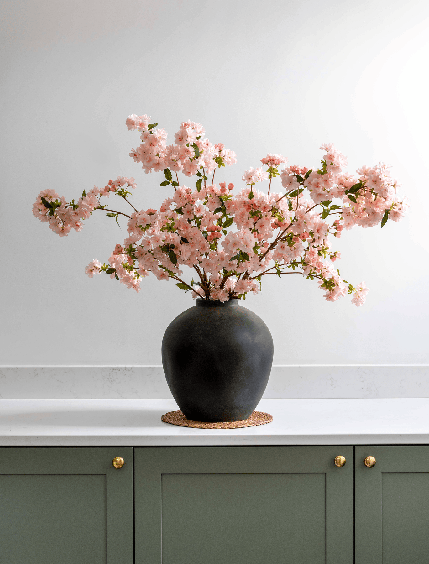 Soft blush cherry blossom stems bring a gentle pop of colour and a beautifully delicate feel. Perfect for creating height and texture, these stems offer instant brightness in any room.