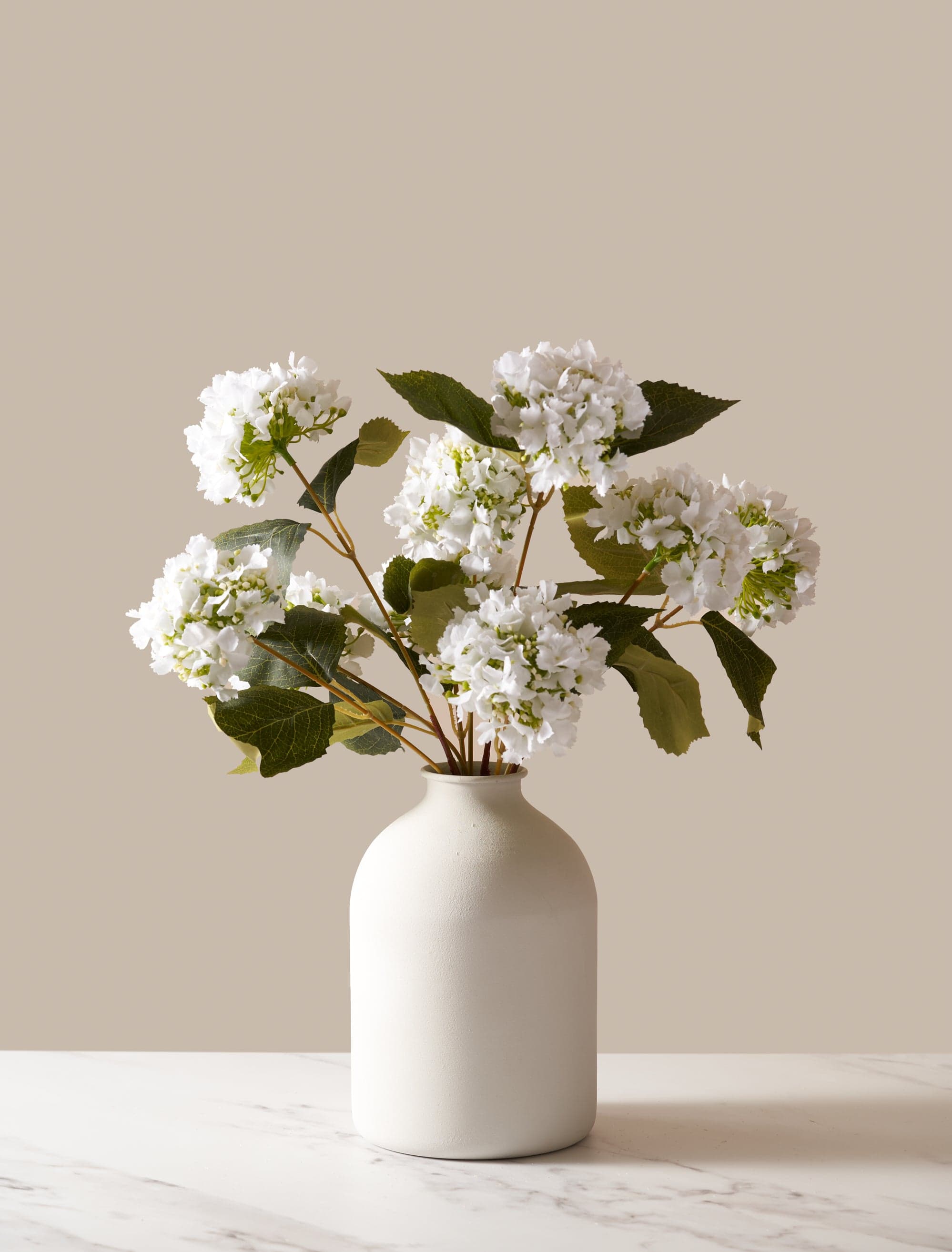 We recommend pairing this Faux Hydrangea bunch with our Black or White Arlo Vase as pictured.
