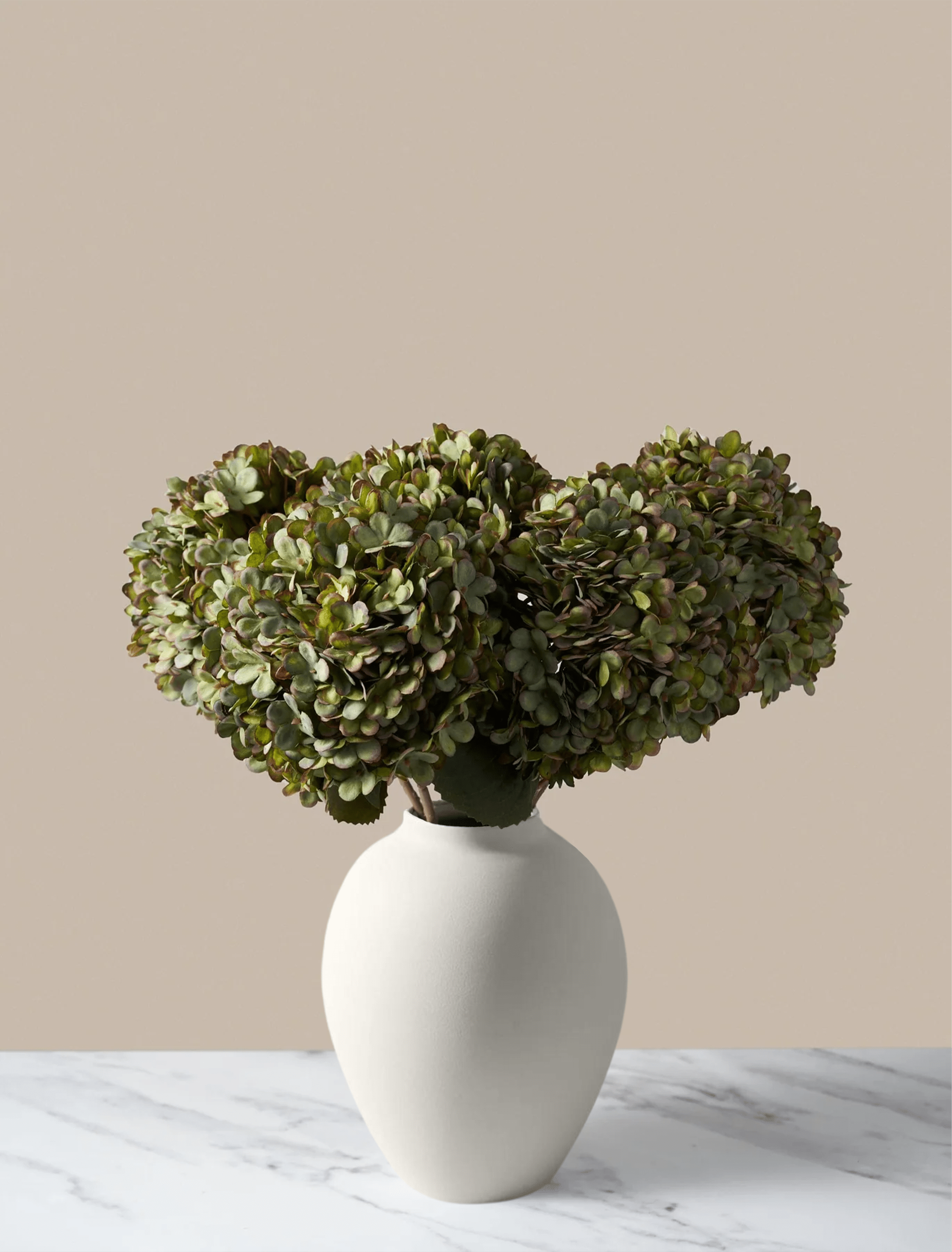 Beautiful large hydrangeas resembling the classic 'Hydrangea Annabelle'. These delicate faux blooms are ideal for spring and summer. Our Green colour is the perfect earthy colour to add a natural element to any home.