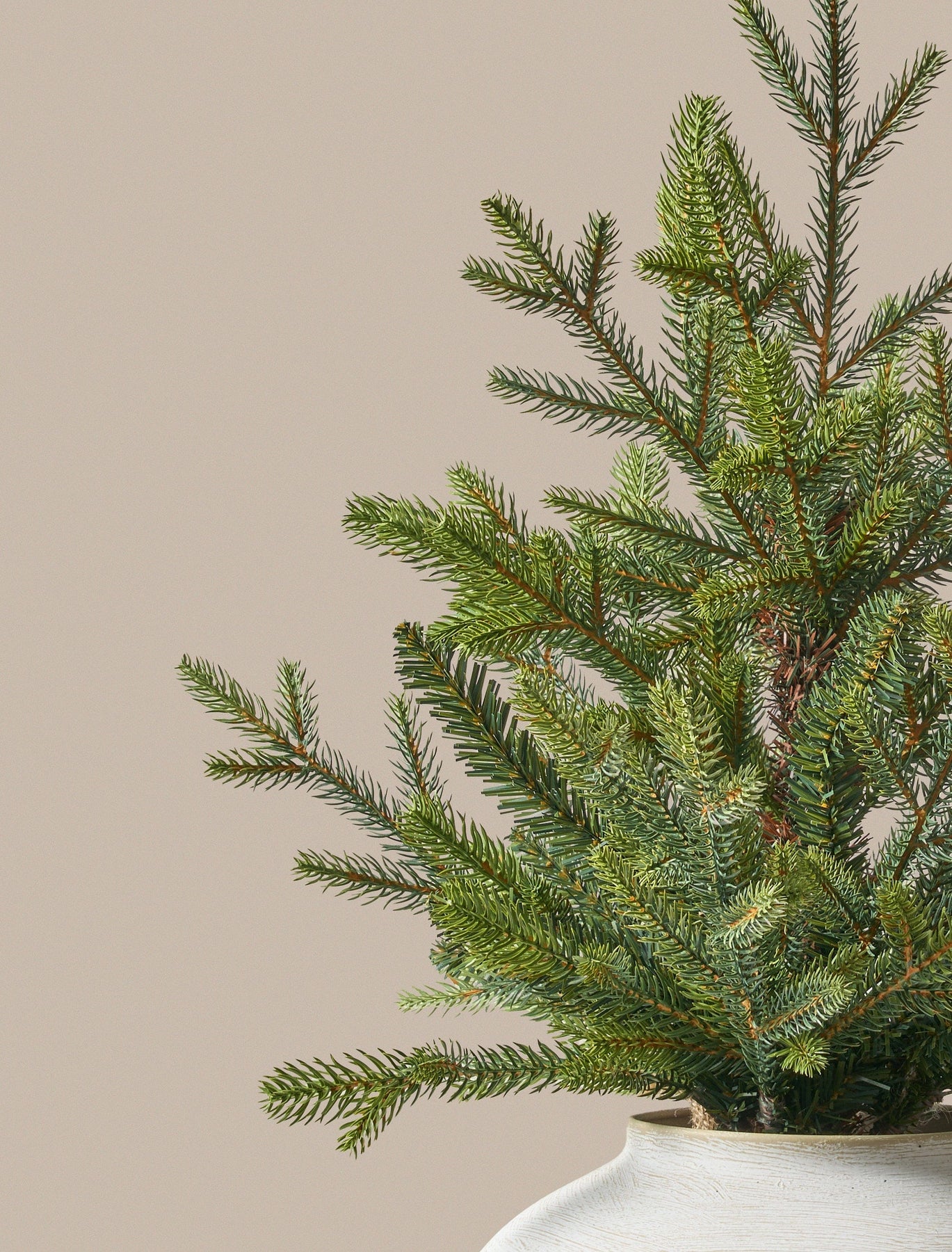 The perfect Christmas addition to your home. This realistic looking faux tree is perfect for any table top. We've paired it here with the Arina vase for an elevated look.